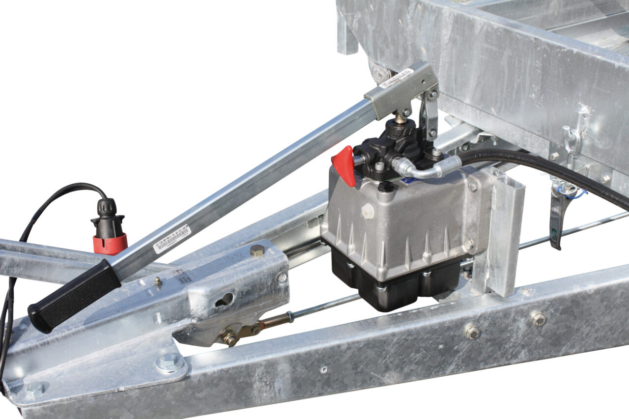 Das elektrische Kippsystem ist einer der Hauptvorteile dieses Anhängers. Es ermöglicht das einfache Entladen von Materialien durch eine unkomplizierte Steuerung und macht manuelle Arbeit überflüssig. Dieses System beschleunigt, sichert und reduziert die Ermüdung.