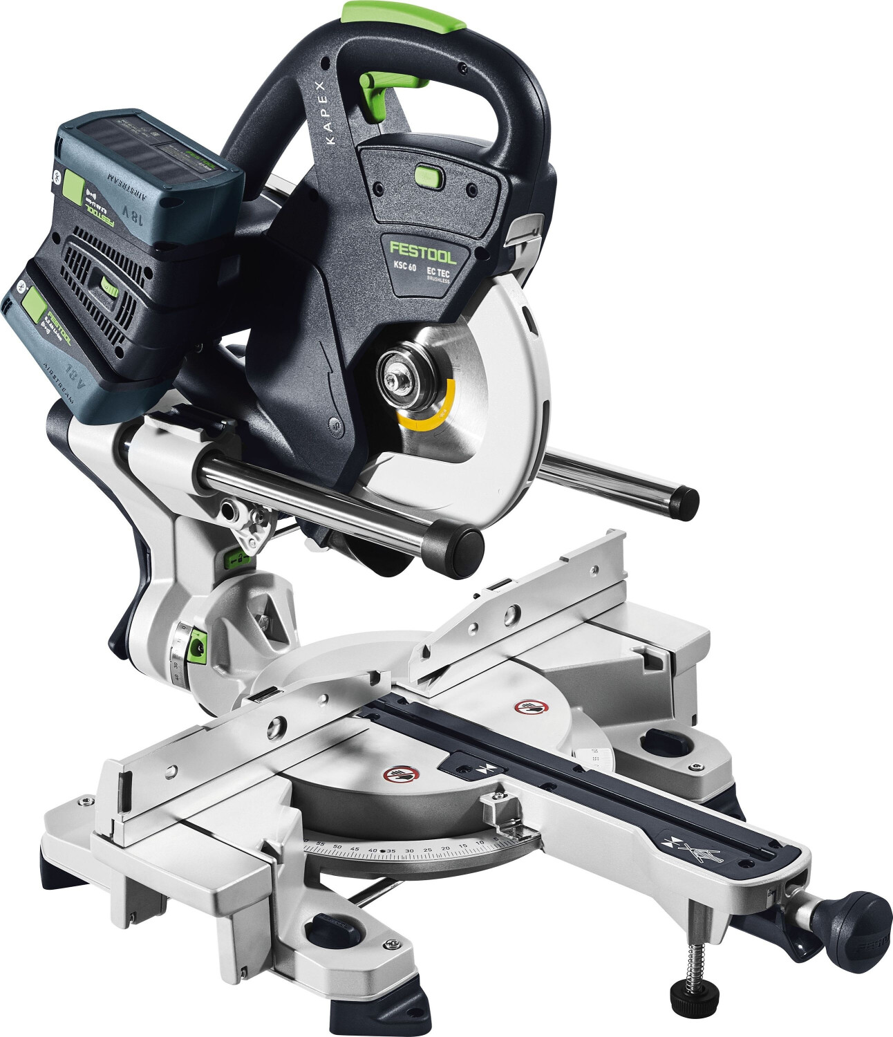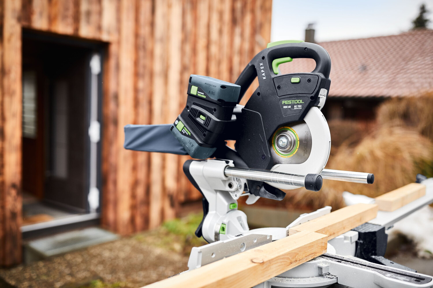 Die Akku-Kappsäge Festool KSC 60 EB 5,2 I-Plus Kapex vereint Kraft und Mobilität. Erleichtere dir die Arbeit, wohin auch immer deine Aufgaben dich führen.