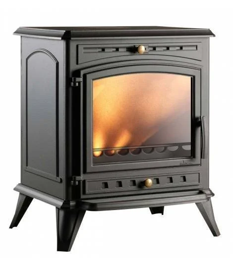 Gusseisen-Holzofen – 12 kW – Wirkungsgrad 76 % – Doppelverbrennung – Große Scheibe