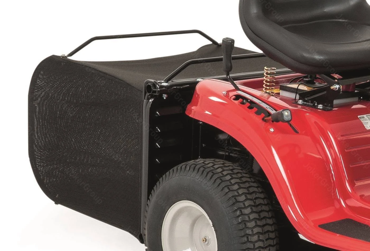 Die MTD-Einsteigerserie bietet grundlegende Features für die bequeme Gartenarbeit. Mit einer Schnittbreite von 76 cm und einem kleinen Wendekreis von nur 46 cm ist dieser Rasentraktor ideal für große Flächen bis 3.000 m² geeignet, wobei auch Bäume und Sträucher kein Hindernis darstellen. Der Motor lässt sich einfach per E-Starter anwerfen, bevor die Steuerung der Geschwindigkeit ganz komfortabel über die 6-Gang-Transmatic-Steuerung erfolgt. Genauso einfach lässt sich die Schnitthöhe an einem Hebel in fünf Positionen zwischen 30 und 95 mm verstellen. Im Lieferumfang enthalten ist zudem der 200 l-Fangsack, durch den der separate Arbeitsschritt des Einsammelns von Schnittgut entfällt. Auch der Heckdeflektor ist inklusive. Schließlich erweist sich das Frontlicht als nützliches Feature, durch welches das Arbeiten auch in der Dämmerung möglich ist.