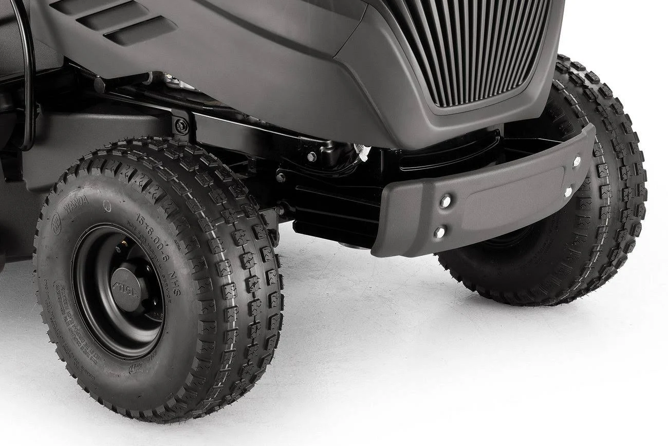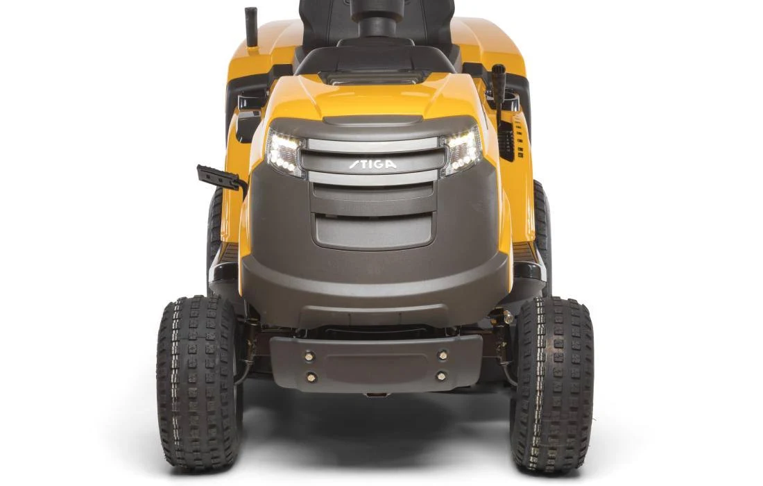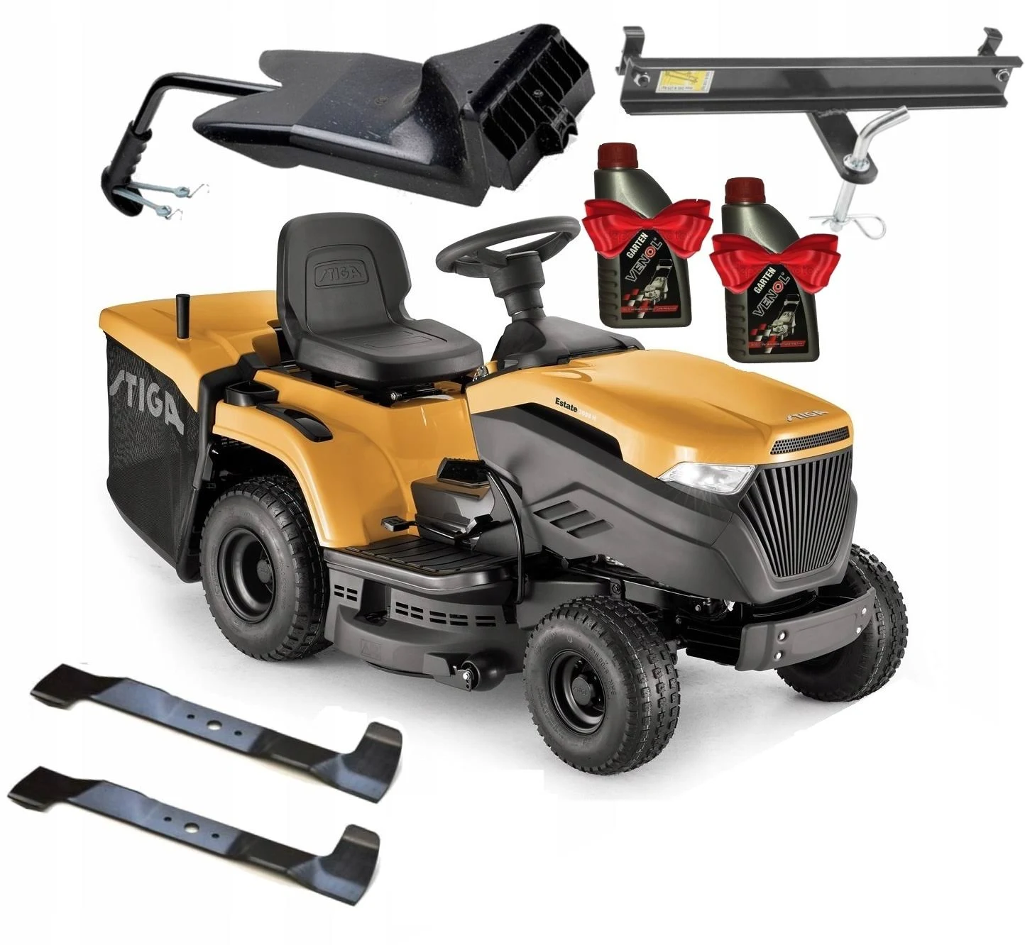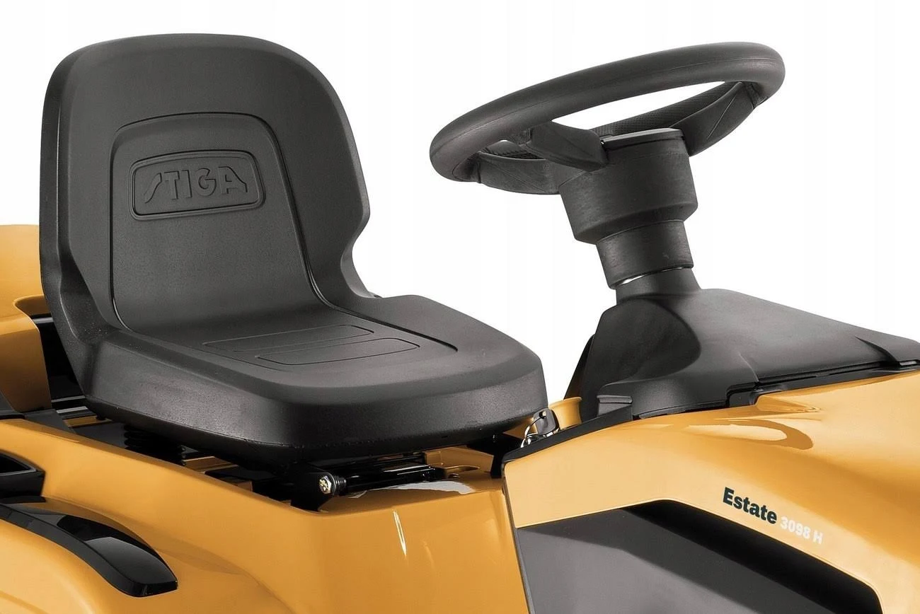 Mit dem Stiga Estate 3098 H präsentieren wir ein Modell mit einem leistungsstarken Briggs & Stratton PowerBuilt 4165 AVS Motor. Der Briggs & Stratton Motor verfügt über 8,6 kW (11,7 PS) bei 2600 U/min und einen Hubraum von 500 cm³. Das Mähwerk ist mit zwei gegenläufigen Doppelmessern ausgestattet und kann bequem über die elektromagnetische Kupplung zugeschaltet werden. Danach steht eine 98 cm Schnittbreite zur Verfügung, die sich in 7 Stufen, von 25 bis 80 mm, in ihrer Schnitthöhe regulieren lässt. Durch die Tasträder wird stets sichergestellt, dass ein Kontakt des Mähwerks mit dem Boden vermieden wird. Egal ob man das Gras im 240 Liter Fangkorb sammelt oder mit dem Mulchstopfen die hervorragende Multiclip Funktion von Stiga verwendet, das Ergebnis überzeugt immer. Der Stiga Estate 3098 H ist mit seinem komfortablen Hydrostatgetriebe für Flächen mit bis zu 4000 m² geeignet. Mit dem Hydrostatgetriebe lässt sich die Geschwindigkeit in Vorwärts- und Rückwärtsgängen stufenlos regulieren und es besteht stets die vollkommene Kontrolle über den Rasentraktor. Weitere Features des Estate 3098 H sind das Lenkrad mit Softgriff, der Komfortsitz und die LED-Frontlichter. Im Lieferumfang sind das Ladegerät, die vordere Stoßstange, eine Zugöse und ein Mulchkeil enthalten. Beachtlich sind auch seine Einsatzmöglichkeiten für den Winterdienst mit dem optional erhältlichen Schneeräumschild. Dank der LED-Scheinwerfer ist das Schneeräumen auch in den dunklen Morgen- und Abendstunden immer eine sichere Sache. Der Rasentraktor wird teilmontiert geliefert, Fangkorb, Lenkrad und der Sitz müssen montiert werden.
